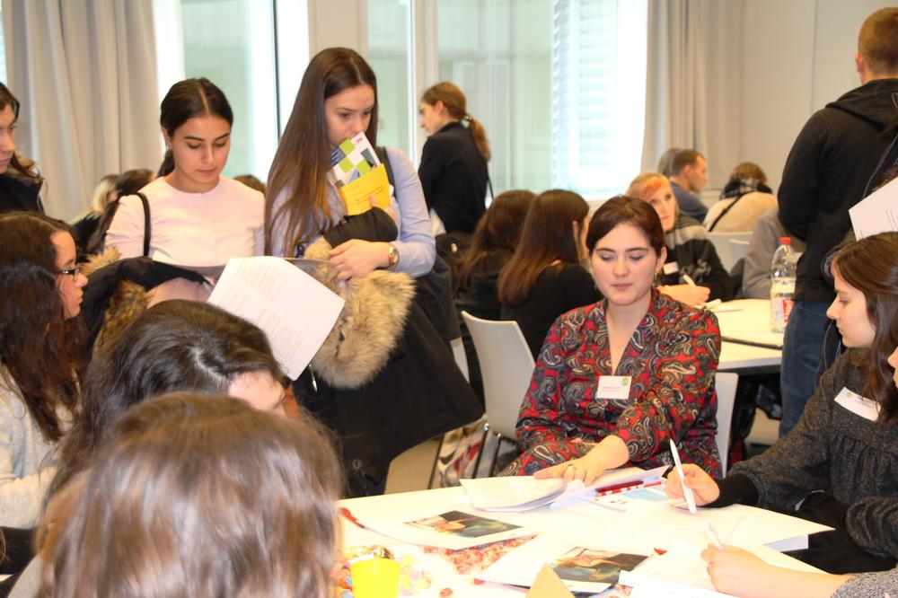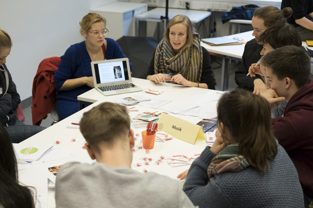 Mit Lehrerinnen und Lehrern aus verschiedenen Schulen werden alltägliche Aufgaben, Probleme und Herausforderungen diskutiert - Wie und wo bewerbe ich mich? Wie finanziere ich mein Studium?